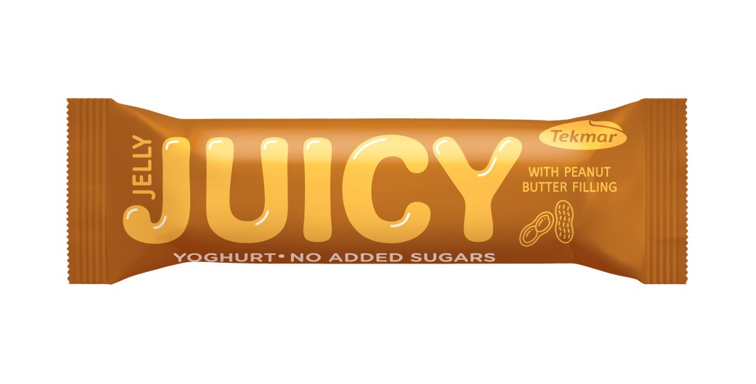 Barra com recheio de manteiga de amendoim e cobertura de iogurte com adoçante. Contém açúcares naturais dos ingredientes.