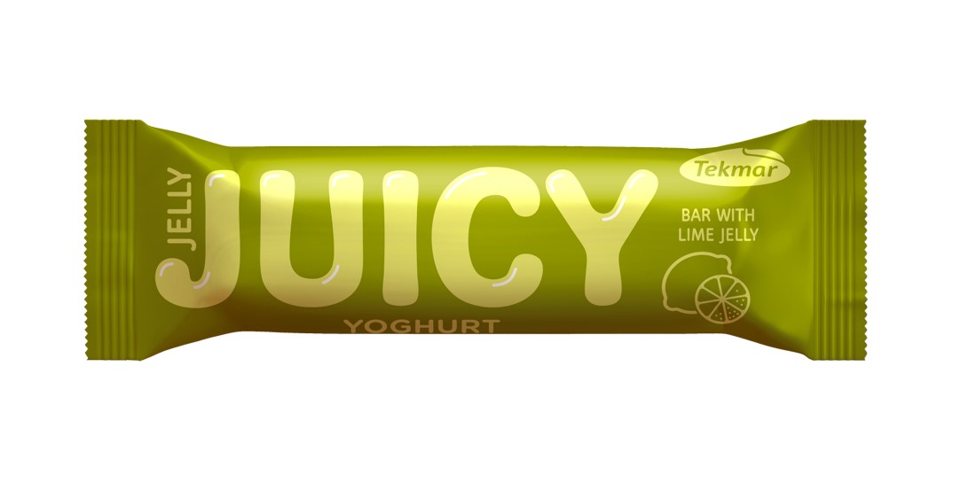 Barra com geleia de lima em cobertura de iogurte com adoçante.